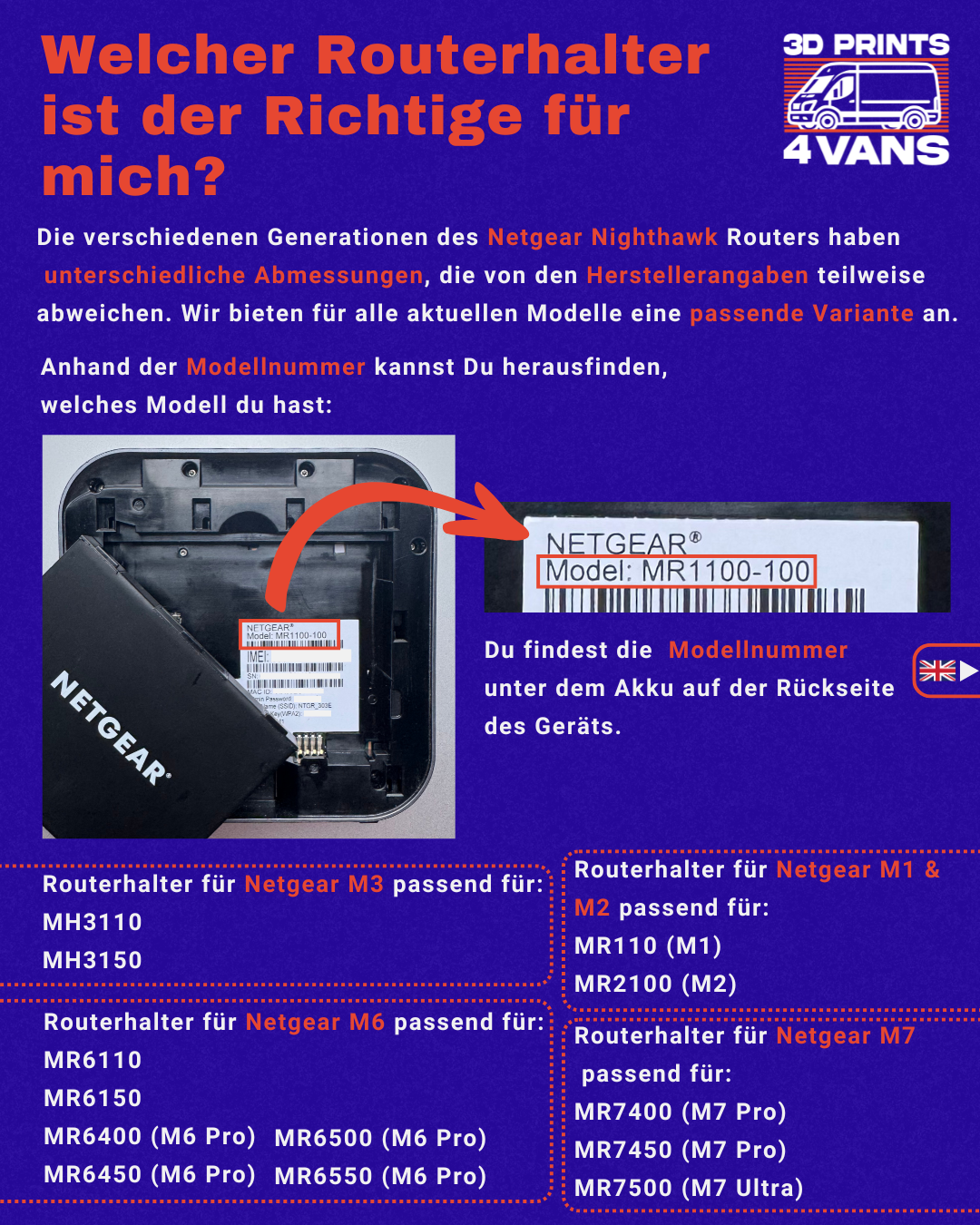 Router mount for Netgear Nighthawk M6 (MR6150/MR6450/MR6500/MR6550) for hanging in camper van, motorhome, caravan, LTE for 5G and WLAN