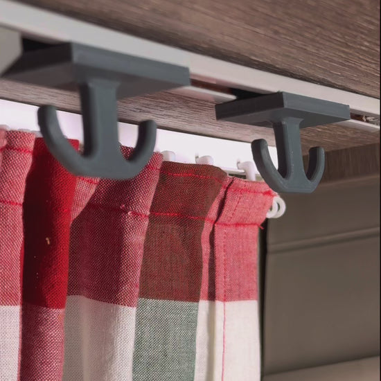 Unsere neue Variante direkt aus dem Camper-Alltag: Der Doppel-Haken braucht nicht mehr Platz als der Einfach-Haken, bietet aber doppelt so viele Möglichkeiten! Schlüssel, Mützen, Kabel, Sonnenbrillen, Aufbewahrungsnetze, Küchenutensilien und vieles mehr kann platzsparend entlang der Stromschiene verstaut werden. Der Haken passt an die Schienen am Esstisch sowie über der Küchenzeile und im Schlafbereich. Ideal für unterwegs, wenn Platz effizient genutzt werden muss.