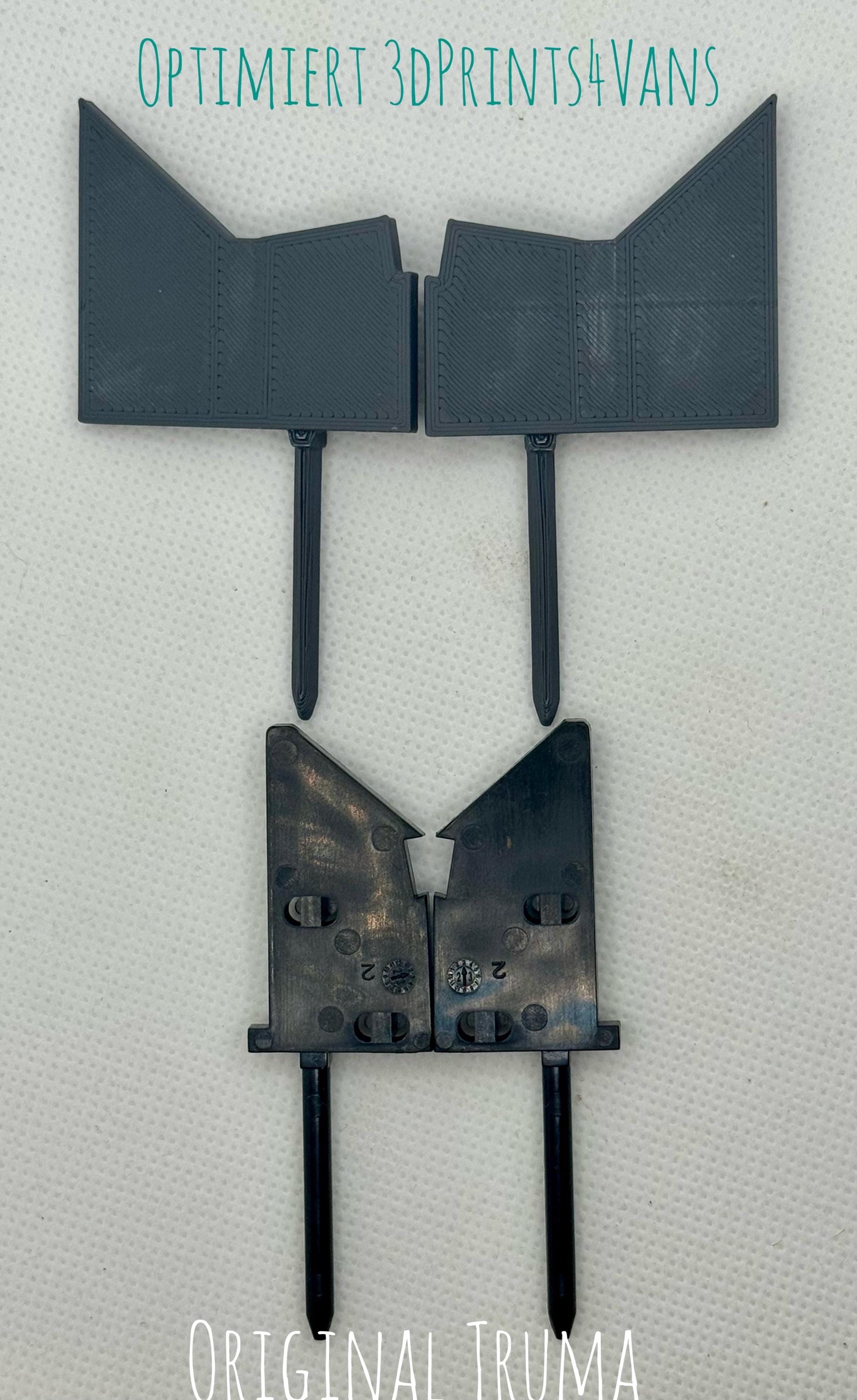 Hier hilft das Klammernset (li+re). Die Originalklammer wird demontiert und die 3dprintsforVans-Klammer anstatdessen montiert. Die Montage ist ganz einfach, es kann gerne zur Unterstützung bei mir angefragt werden